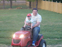 Z loves to help mow the lawn...as long as Daddy is the one doing it.